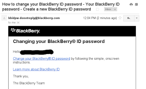 Pic 2 - Cek email pemulihan password yang dikirim oleh BlackBerry. Klik link yang tercantum dalam email.